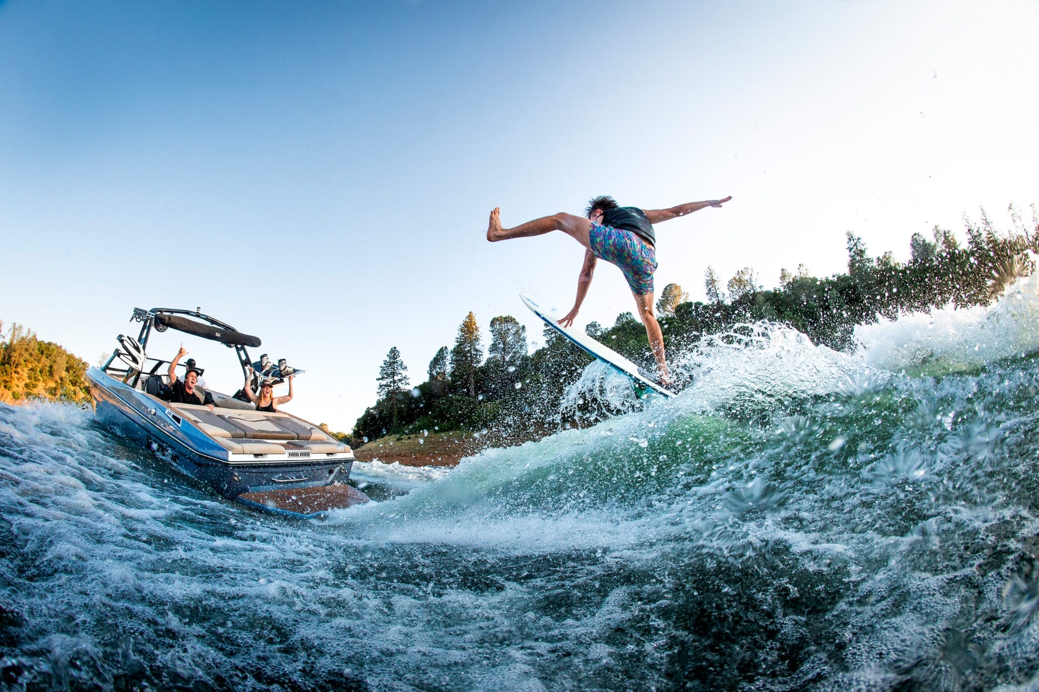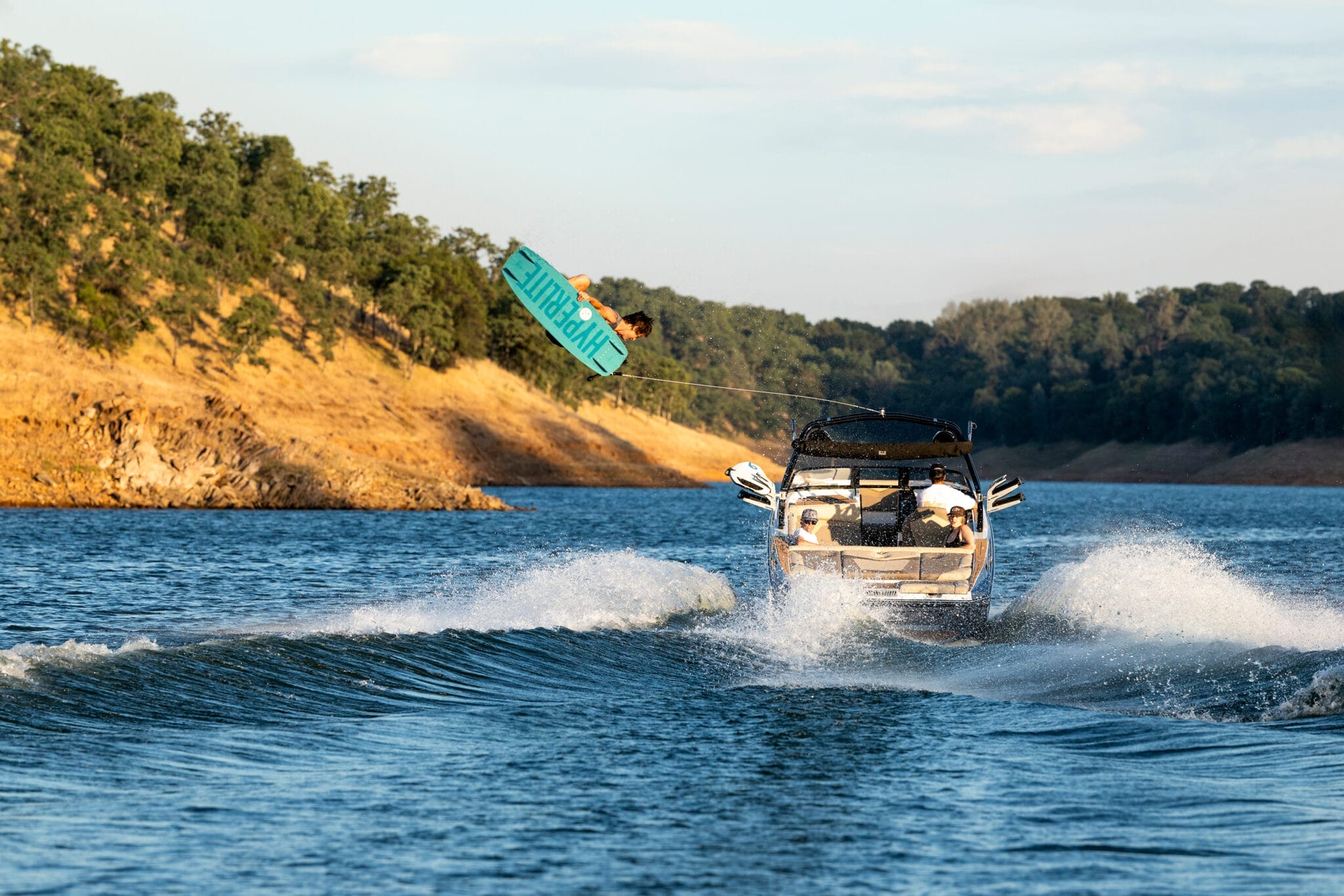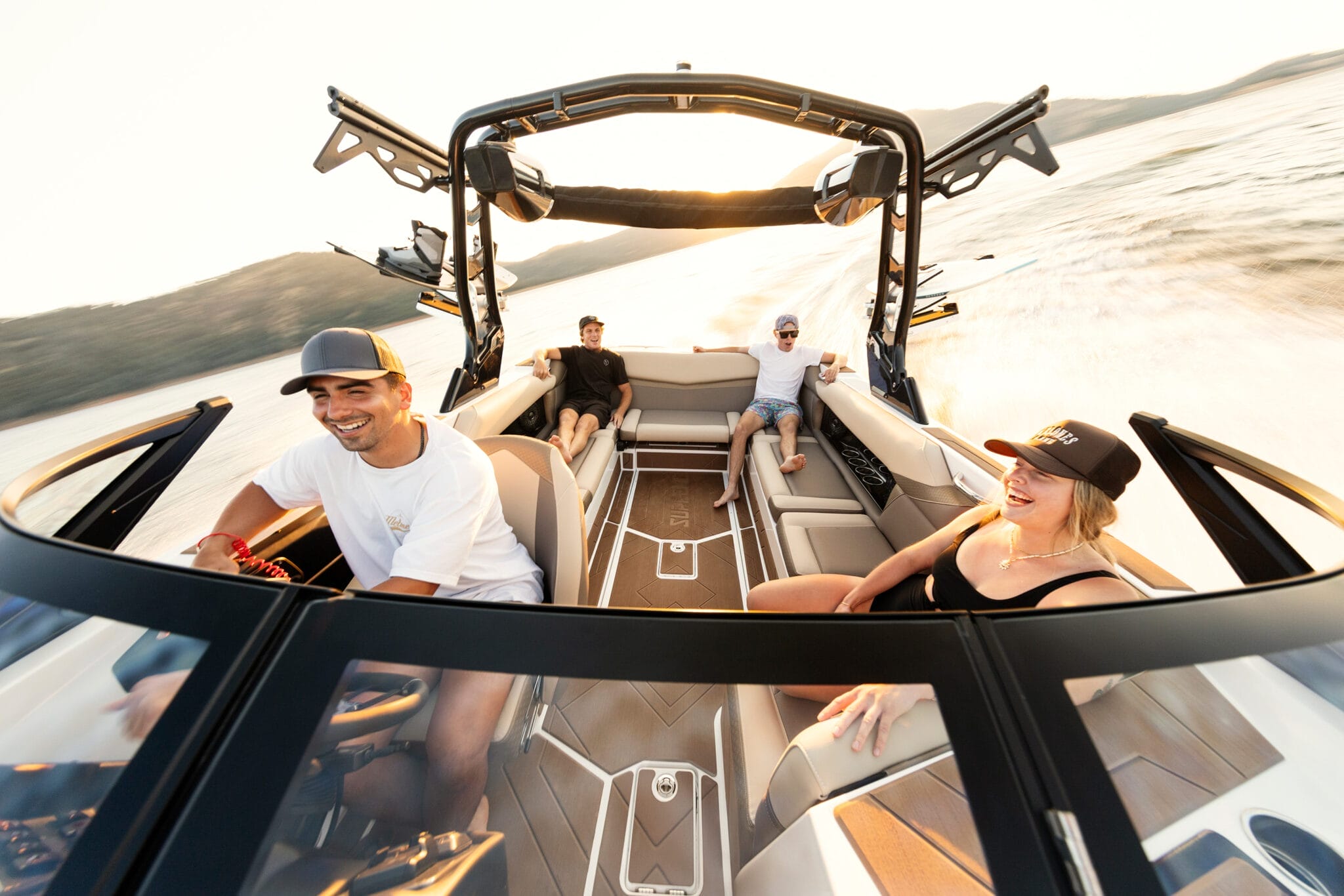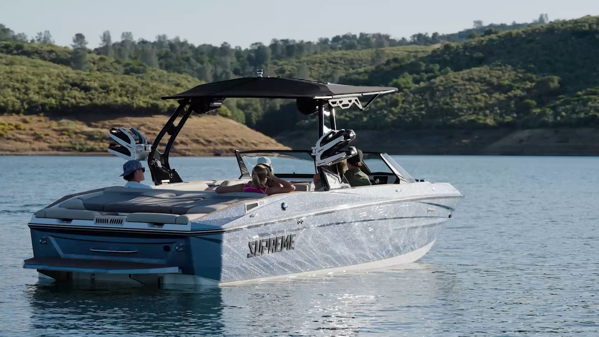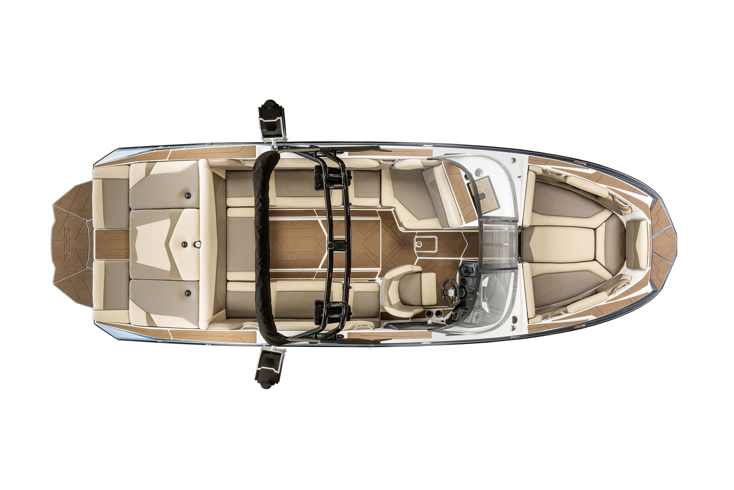 Supreme’s exceptional wake surfing capabilities stem from proven design principles. The foundation of our outstanding wave generation lies in the modified deep-v hull architecture integrated throughout the EZ-V running surface. This configuration consistently outperforms flat hull alternatives when precision wake shaping meets your performance demands. Featuring twice the V-angle (20 degrees of deadrise) compared to competitive designs, our modified deep-v extends from waterline level downward, delivering remarkably smooth handling in choppy conditions. The ‘modified’ element of this engineering adds critical stability to the hull structure, preventing lateral weight distribution from adversely affecting the water displacement pattern trailing the vessel.