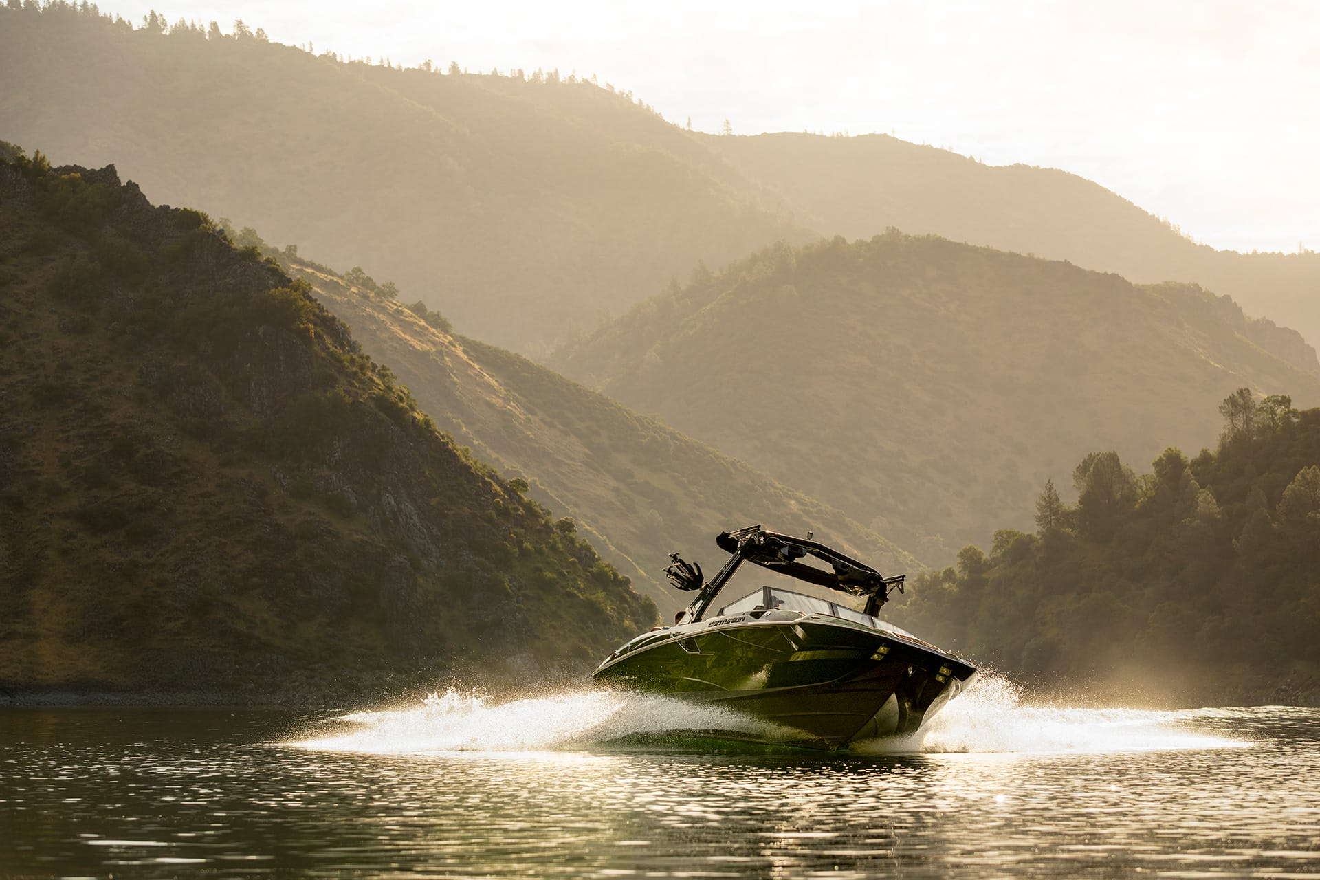 The integrated hook design at the delta pad’s rear edge allows drivers to maintain clear forward visibility while towing riders, without sacrificing wave quality or riding attitude. Additionally, the hull’s shape deflects incoming rollers at both bow and transom points, ensuring rough water conditions won’t interrupt your session. The Opti-V Hull consistently produces superior waves, wakes, and ride quality across all water conditions.